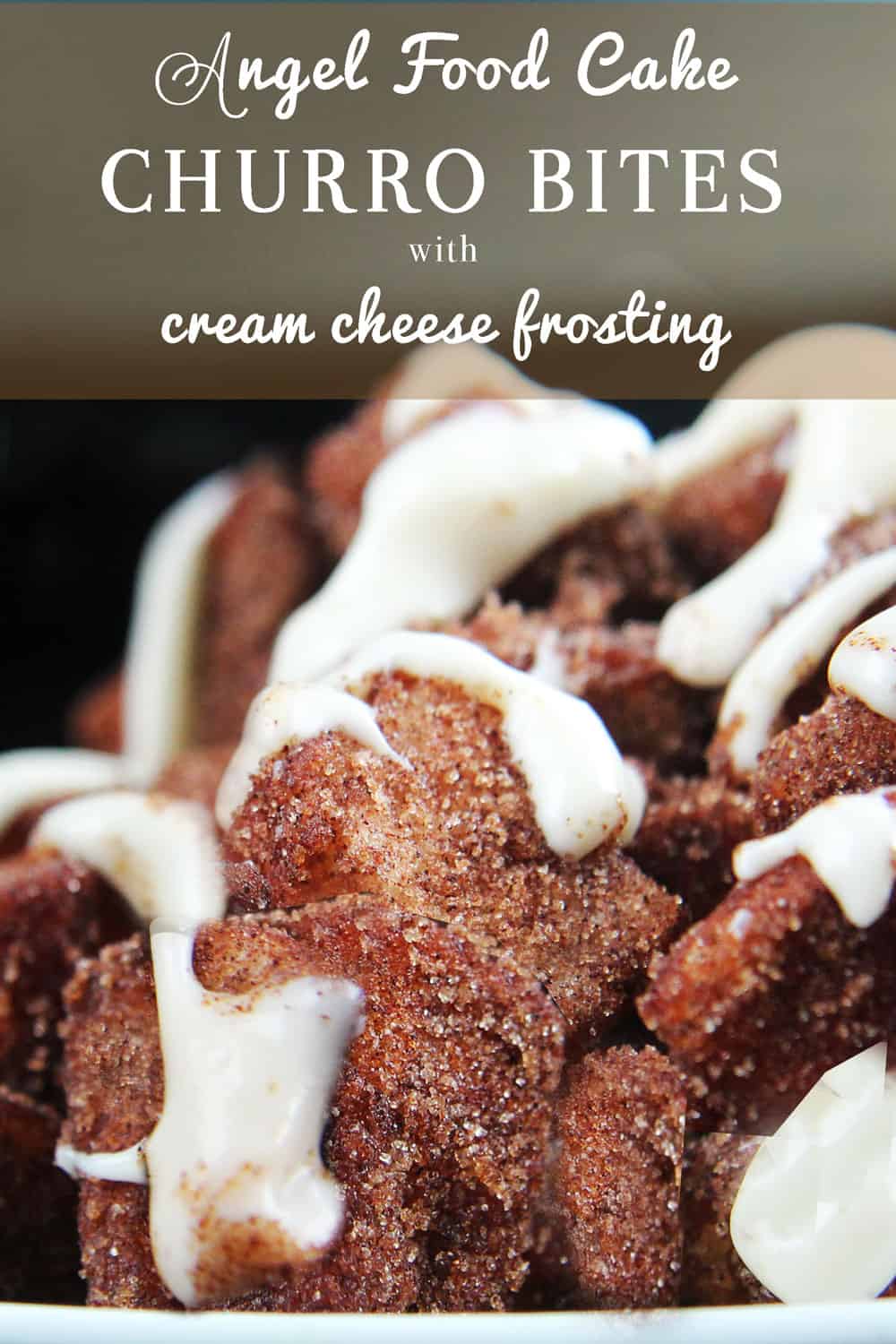 Just imagine churros, but better! Imagine bites of cinnamon and sugar saturated crispy angel food cake on the outside giving way to a warm, soft, airy cakey inside. Hello best ever churro bites!