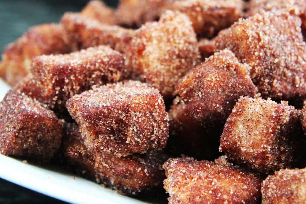 Remember when I made the most delicious French toast ever with angel food cake and the most delicious from scratch churros? Well, I combined the ease of the Angel Food Cake French Toast with all the churro goodness to give you Churro Bites!