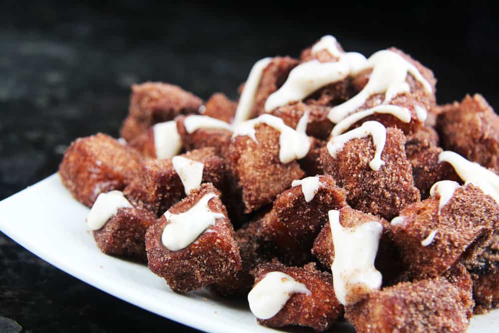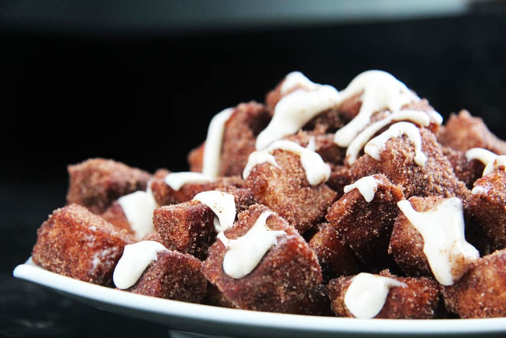 No disrespect to you imagining skills, but whatever you are imagining, I can guarantee its not as good as the real thing. To be completely honest, you don’t even need the cream cheese frosting dip, these churro bites can stand alone in all their cinnamon and sugar glory or you can choose to fall into a coma of delight by adding the cream cheese frosting as a drizzle or dip.