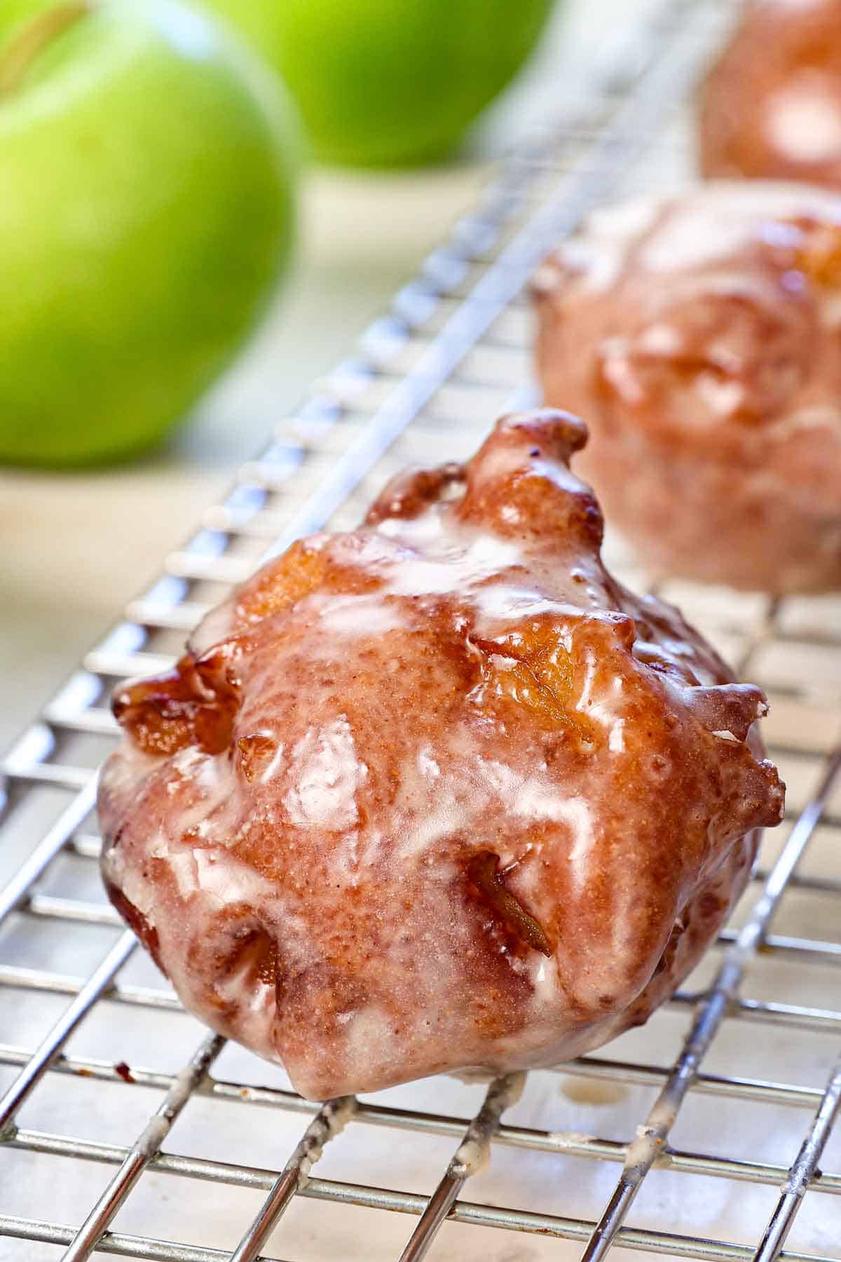 •To Freeze: Freeze unfrosted fritters in a single layer on a baking sheet for 1–2 hours, then transfer to a freezer bag for up to 2 months. Bake frozen fritters at 350°F for 10–12 minutes until warm and crisp, then coat with the h glaze.