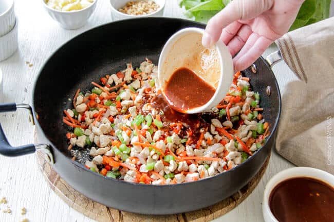 You can make the Thai Chicken Lettuce Wraps in advance at a few varying stages.