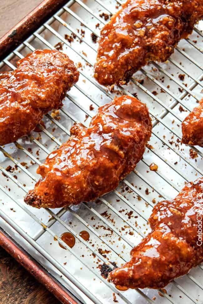 - Crispy factor: The less time you wait between coating the chicken in the glaze and eating, the crispier it will be. That being said, the chicken has a wonderful texture but is not overly crispy.