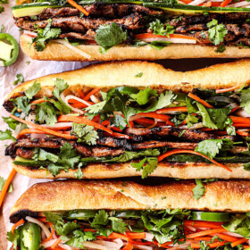 Readers call this Banh Mi Sandwich Recipe (Vietnamese Sandwich) “Fantastic,” “AMAZING,” “outstanding,” “KEEPER,” etc. thanks to the elevated lemongrass marinade, tangy pickled vegetables, chili garlic mayonnaise and toasted buns! It’s a marinate-and-cook recipe that comes together astonishingly quickly once it’s time to sear the pork. This step-by-step banh mi recipe is full of tips, tricks and variations, like how to make with chicken as well!