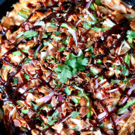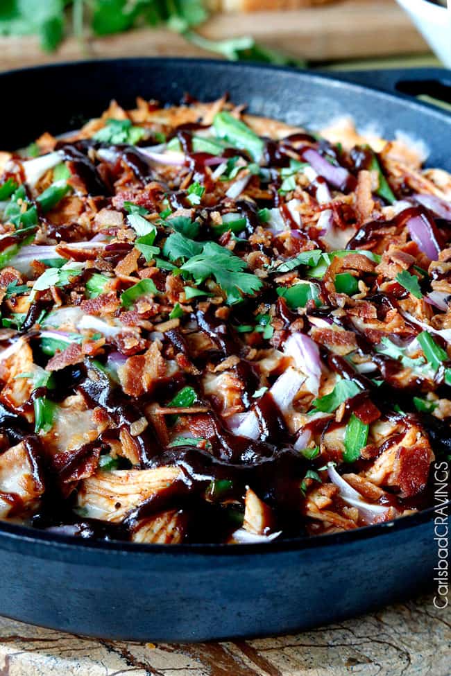 - Optional: Drizzle with extra barbecue sauce, top with bacon and cilantro.
