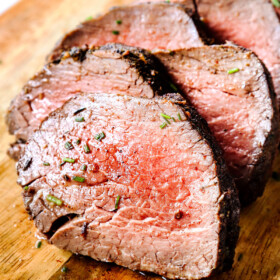 With Valentine’s Day this Sunday, I have been sharing some of my favorite elegant recipes including Tuscan salmon, brown butter gnocchi (coming Thursday), crème brûlée and now this beef tenderloin recipe! (You can check out all of my Valentine’s Day recipes at a glance here.)