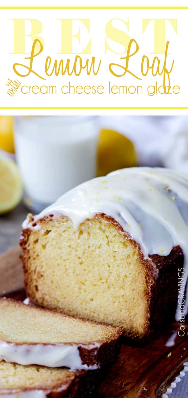 LEMON GLAZE: Finally, the Lemon Bread is finished with a velvety Cream Cheese Lemon Glaze that boasts both lemon juice and lemon extract whipped into the cream cheese and sugar for a creamy, silky, sugary, citrus glaze that is one of my favorite things ever. Well, that and the lemon syrup, and the lemon bread and all three combined to create the BEST Lemon Bread! Starbucks lemon loaf cannot even keep up with all our layers and levels of lemon goodness.