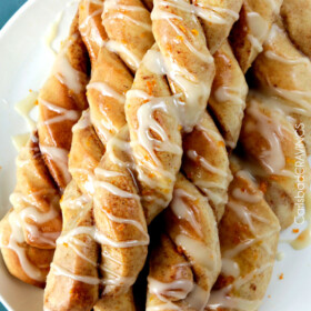 - Let baked breadtwists cool 5 minutes then drizzle with Glaze. Best served warm.