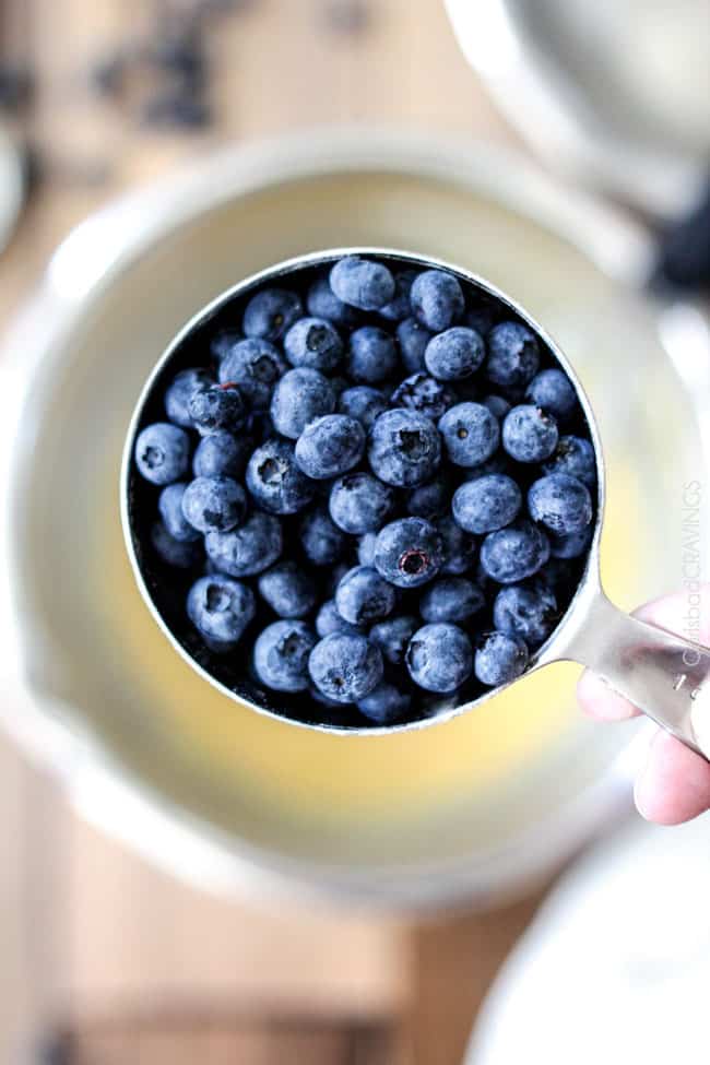 - Add Dry Ingredients to a large bowl and stir until evenly combined. In a separate bowl, whisk together the Wet Ingredients. Add the wet ingredients to the dry ingredients and stir until just combined. Gently fold in blueberries. Batter will seem very wet which is normal.