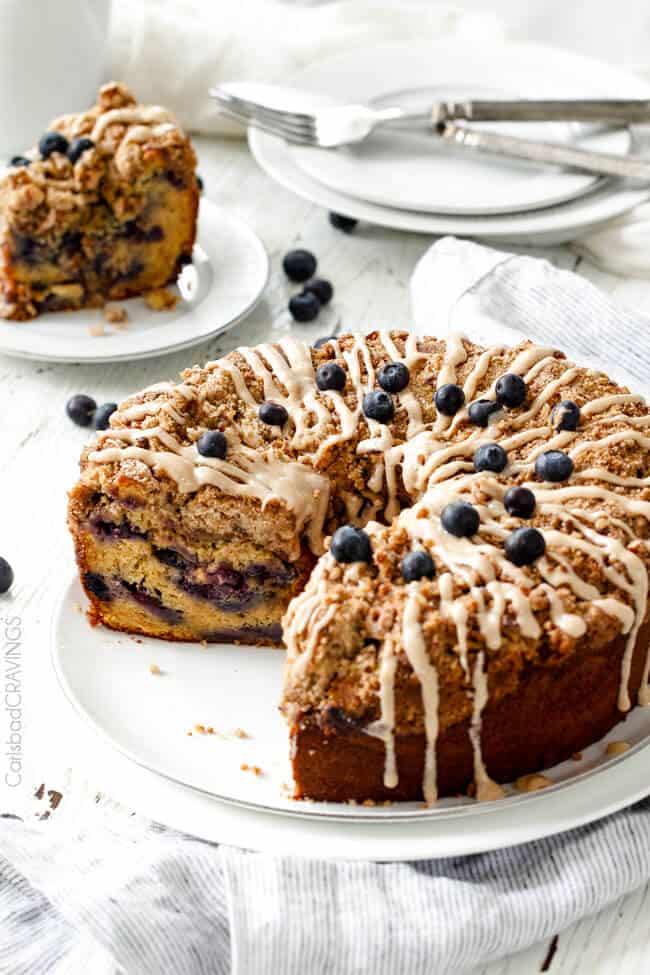 - EXTRA BLUEBERRIES. No one wants to bite into Blueberry Coffee Cake without pops of juicy blueberries in every bite, so this recipe is loaded with one pint of juicy blueberries!