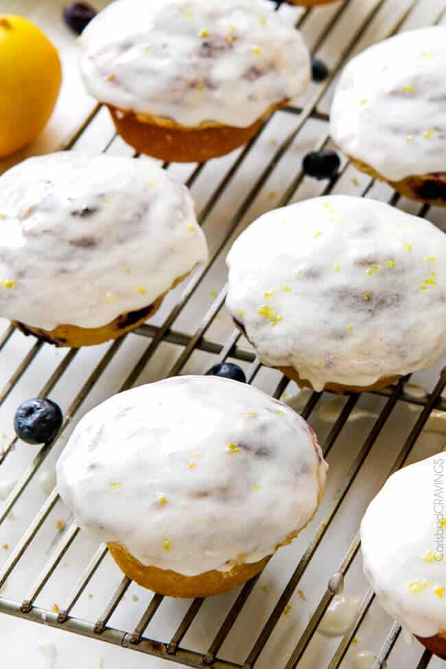 - Let muffins cool completely before glazing: If you try and glaze your lemon Blueberry Muffins right away, then the glaze will melt right off.