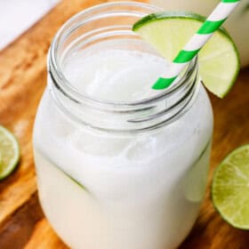 Brazilian Lemonade is a vibrant and refreshing drink perfect for quenching your thirst on a hot day or adding a burst of flavor to any gathering! Despite its name, this delicious beverage is made with limes, not lemons, and boasts a creamy twist thanks to sweetened condensed milk. This “Limanada” is simple to make with tangy limes (peel and all) blended with cool water and sugar, then stirred with condensed milk to creamy, frothy perfection. It’s like a tropical vacation in a glass!