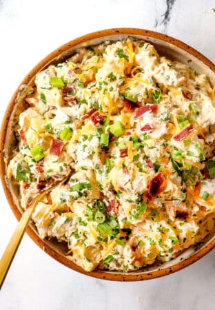 Shortcut chicken. If you don’t have time to marinate the chicken– this recipe also includes a 10-minute prep version using shredded rotisserie chicken!