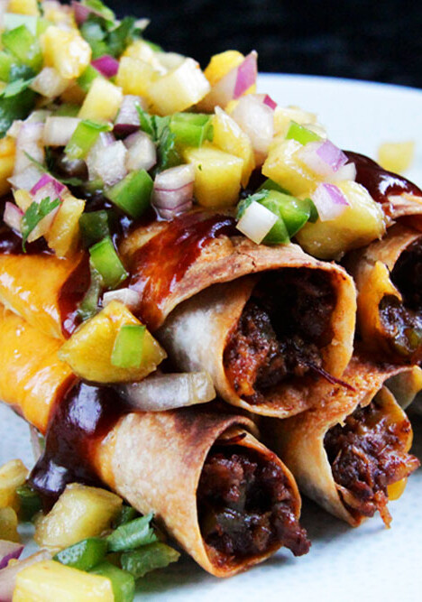 Cheesy Hawaiian BBQ Beef Taquitos & Pineapple Salsa