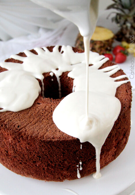 Red Velvet Angel Food Cake with Coconut Cream Cheese Glaze