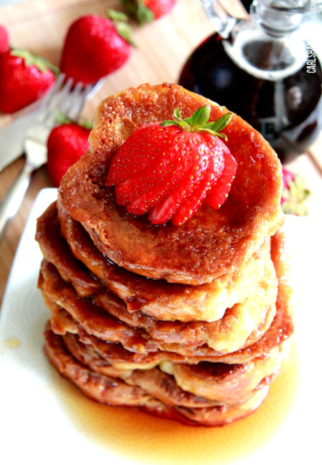 Angel Food Cake French Toast with Cream Cheese and Strawberry Syrup
