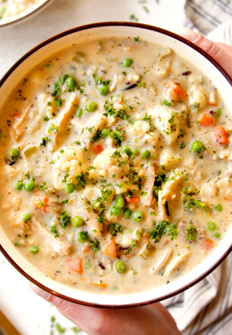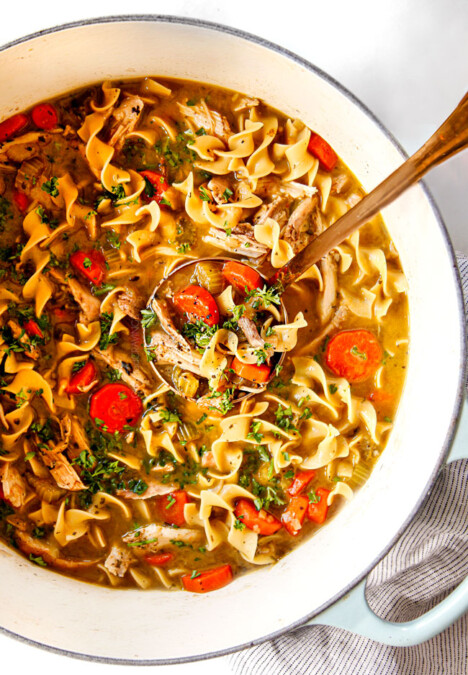 top view of asy Creamy Chicken Noodle Soup
