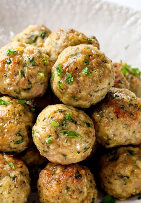 top view showing how to serve Italian turkey meatballs with marinara sauce