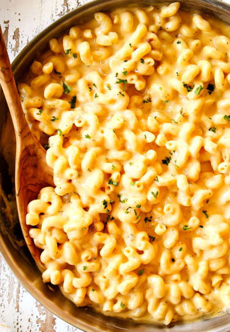 This mega creamy Million Dollar Macaroni and Cheese Casserole is the only macaroni cheese recipe you will ever want to make! make this for guests or family and they will love you forever! The homemade sauce itself is rich and crazy creamy and the casserole is stuffed with a hidden layer of provolone cheese and sour cream that melts when baked for a ridiculous amount of velvety creamy, cheesy goodness.