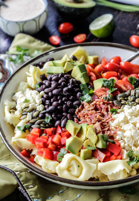 Southwest Tortellini Pasta Salad with Creamy Salsa Dressing