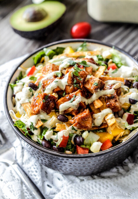 Chipotle BBQ Chicken Salad with Tomatillo Avocado Ranch Dressing