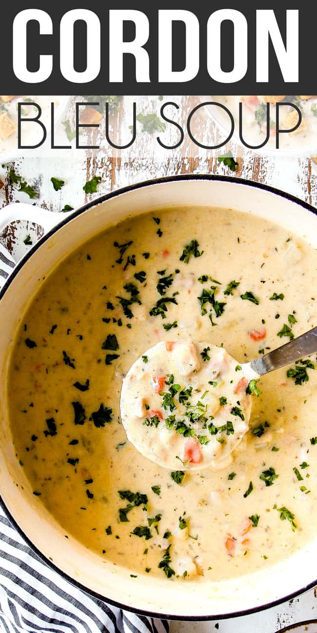 Chicken Cordon Bleu Soup is your favorite entrée all wrapped up in creamy soup form without all the tedious layering or rolling!