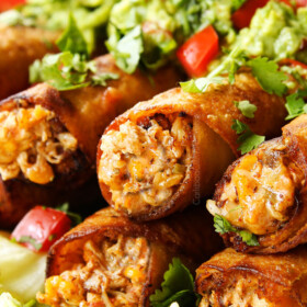 These Chicken Flautas are “amazing!!!!”(read the reviews!) easy, cheesy, shatteringly crispy and on your table in 30 minutes! They can be shallow pan fried, baked or air fried, and even frozen for later – all instructions included! Follow the 5-star recipe or swap the shortcut shredded chicken for taco meat, carnitas, Mexican beef, etc.