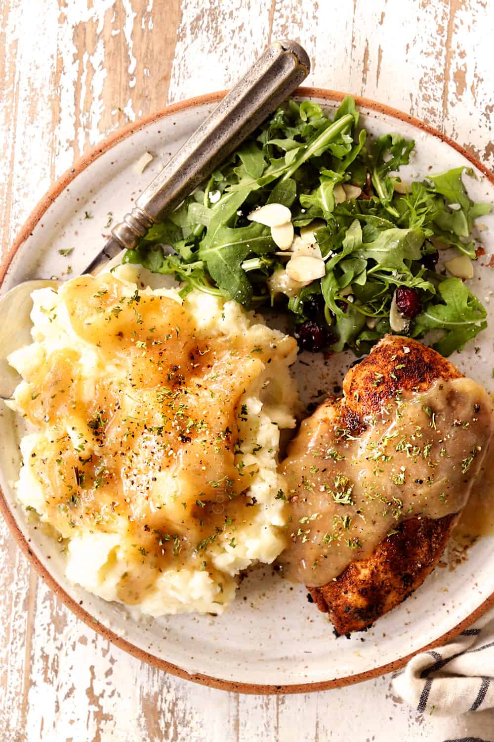 - Chicken: of course! Serve this gravy over chicken breasts, chicken thighs, store-bought rotisserie chicken, turkey or even beef or pork. Add some roasted or steamed veggies for an easy gourmet dinner.