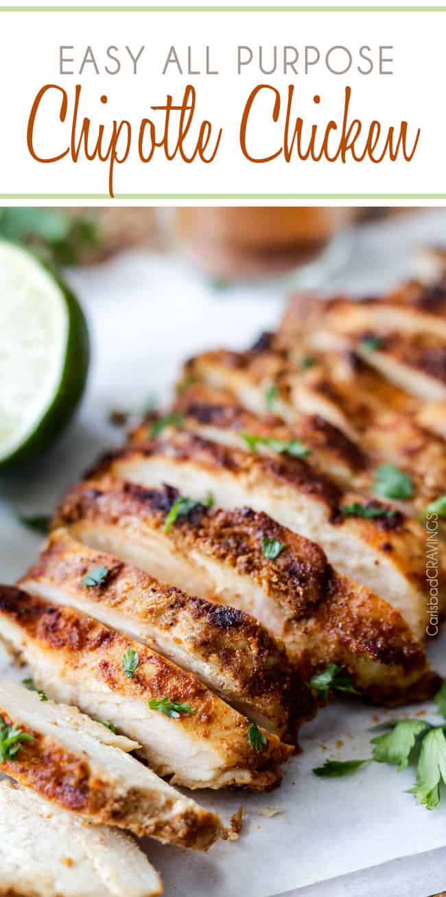 I’ve used this same Chipotle Chicken Recipe as the crowning adornment of my Southwest Salad with Creamy Avocado Salsa Dressing, Chipotle Chicken Salad with Mango Dressing, Chipotle BBQ Chicken Salad with Tomatillo Avocado Ranch, Chipotle Ranch Chicken Flatbread, BBQ Chipotle Chicken Sandwiches, and Chipotle TexMex Creamy Roasted Red Pepper Pasta – can you tell I’m obsessed with this Chipotle Chicken recipe?!