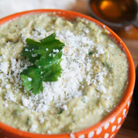 This Avocado Dip is my FAVORITE avocado/guacamole spread EVER! I’m obsessed. The creamy, earthy avocados are paired with fresh lime juice, salty Cotija cheese (aka the “Parmesan of Mexico”), Greek yogurt, a dash of honey all spiced with cumin, chili powder, garlic and cayenne pepper. The resulting Avocado Dip is sweet, tangy, salty, spicy, lusciously creamy and positively addicting! – AND super healthy and EASY too – winning!