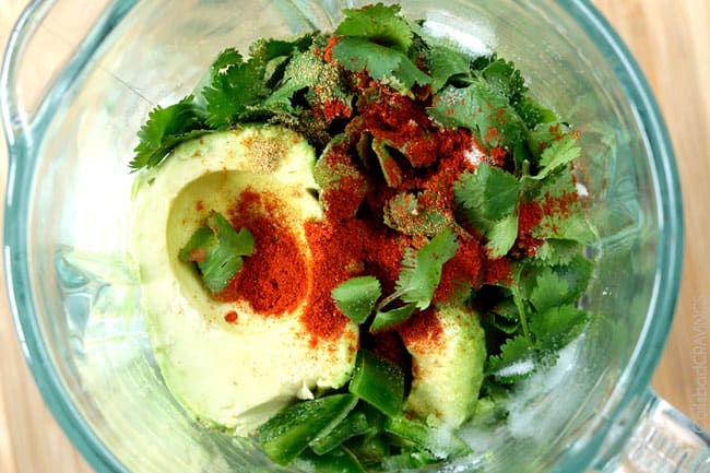 - Meanwhile, add all of the Creamy Blender Avocado Sauce ingredients to your blender and chop then puree/liquefy until smooth.