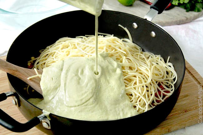 I make this at least couple times a month. My family just cant seem to get enough of this pasta. I used serrano this time instead of jalapeno. Super yummy.