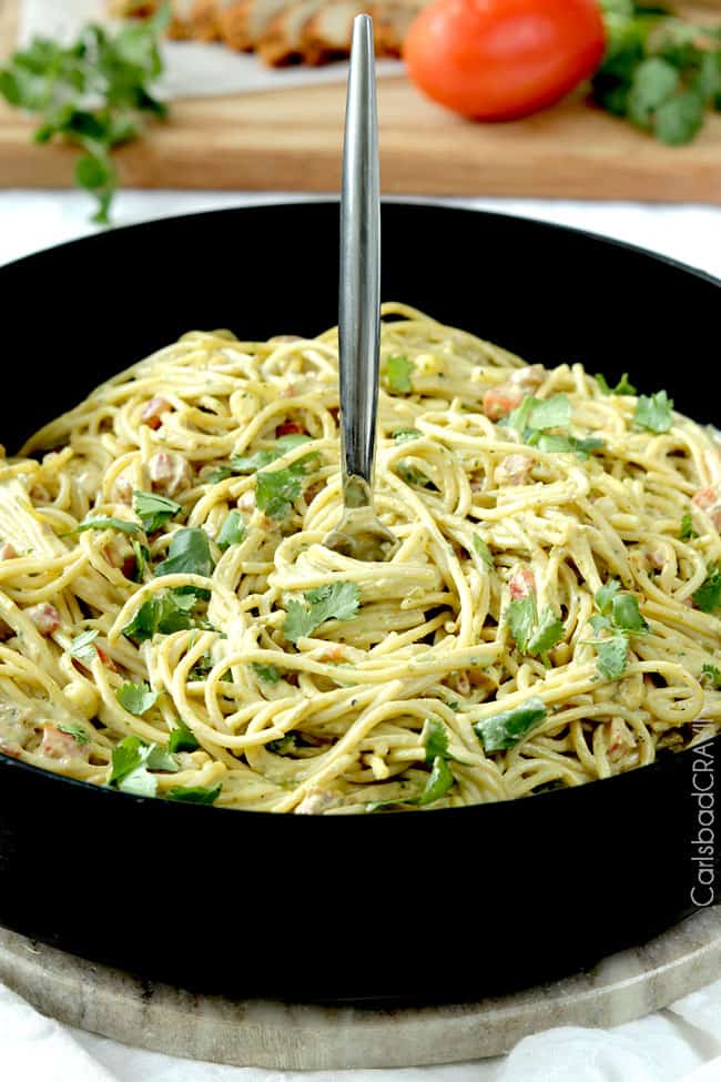 - Seasonings: You can mix up the flavor profile of this Baja Avocado Pasta and go Italian by swapping the cilantro for basil and parsley, swapping the lime juice for lemon and adding Parmesan cheese.