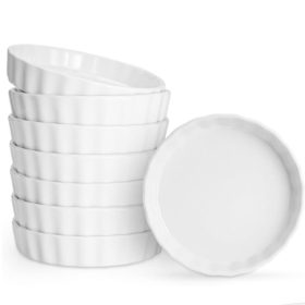 The depth of the ramekins will determine how long it takes for the custards to bake. Shallow 5- and 6-ounce ramekins that are less than 1 inch deep will take about 25 or 30 minutes. Deeper, narrower ramekins, about 2 inches deep, will require 40-50 minutes.