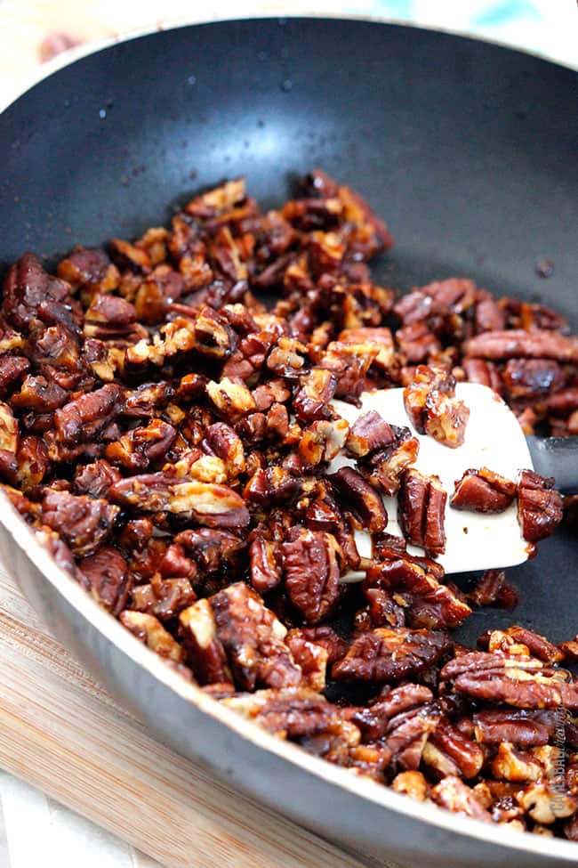 • You can also make the caramelized pecans in advance and store the in an airtight container for up to 7 days.