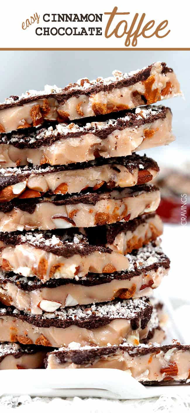 When I posted my Toffee Pecan Caramel Pound Cake back in April as my third dessert recipe post ever, I mentioned how my my mother-in-law gifts us her famous toffee every Christmas. I got almost as many requests for her toffee recipe as comments on my pound cake! With good reason. A reliable, delicious, English toffee recipe is hard to come by and this toffee isn’t just delicious, it’s its so addictively delicious you should add warning labels to all your gift tags.