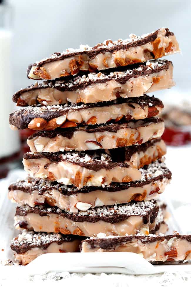 I honestly never wanted to learn how to make toffee because I knew I would eat it all — every time. Not many desserts do that to me. This toffee does. I finally decided it was time to make toffee for Christmas gifts and had fabulous intentions of gifting this toffee to neighbors and friends, but I ended up gifting it to myself. Patrick’s been wondering what to get me. I’ll just let him know I’m set.
