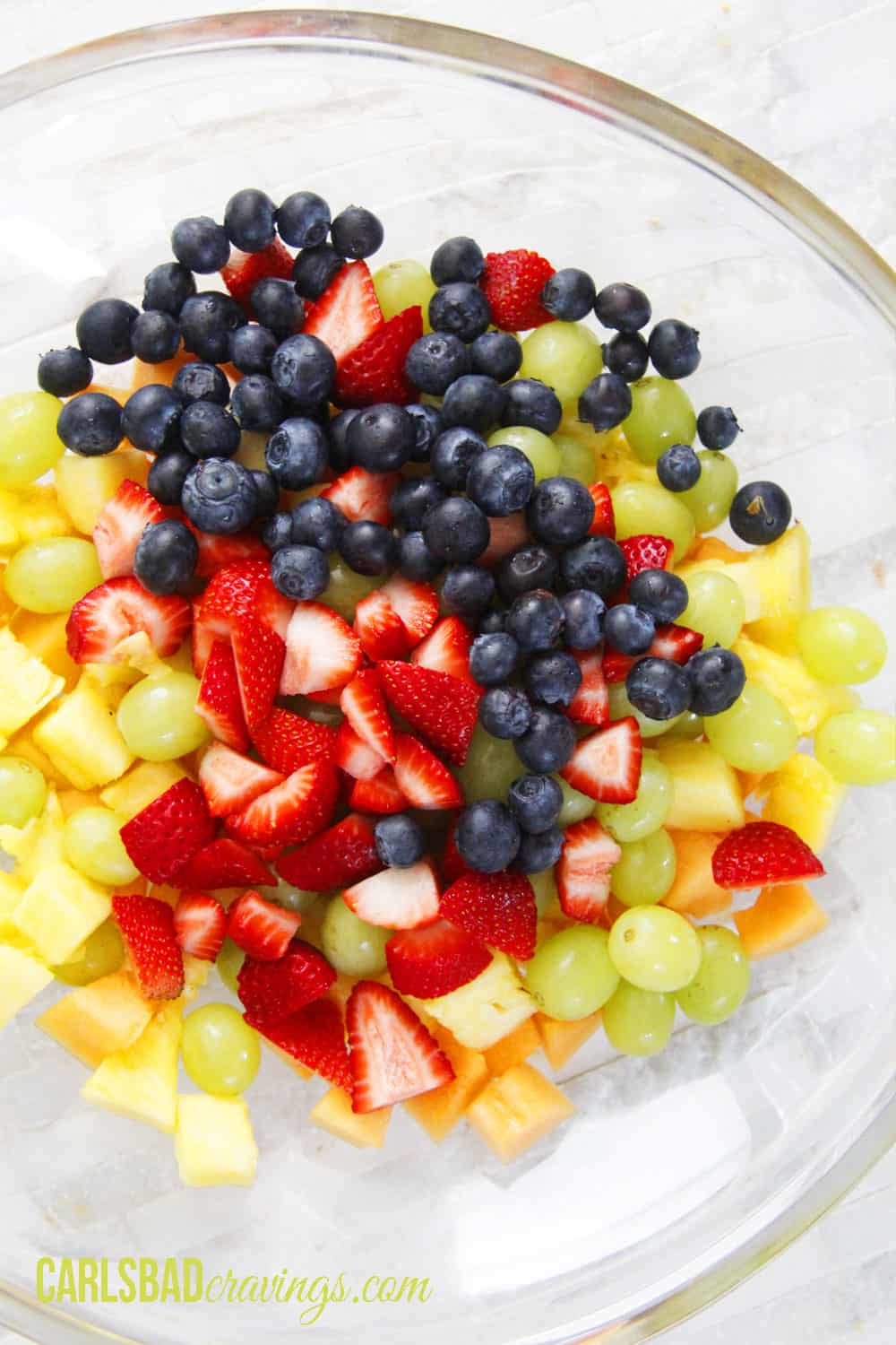 You will want to toss bananas, apples, pears or any fruit that oxidizes in some pineapple juice (my fav juice for fruit because it’s not tart) before adding to the fruit salad.