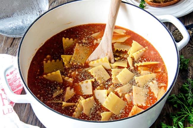 - Herbs and spices: This Lasagna Soup is seasoned to perfection with dried basil, thyme, oregano, and parsley, salt and a bay leaf.
