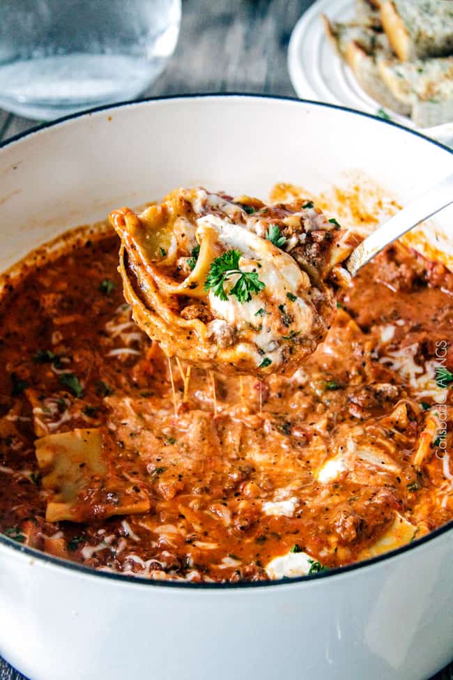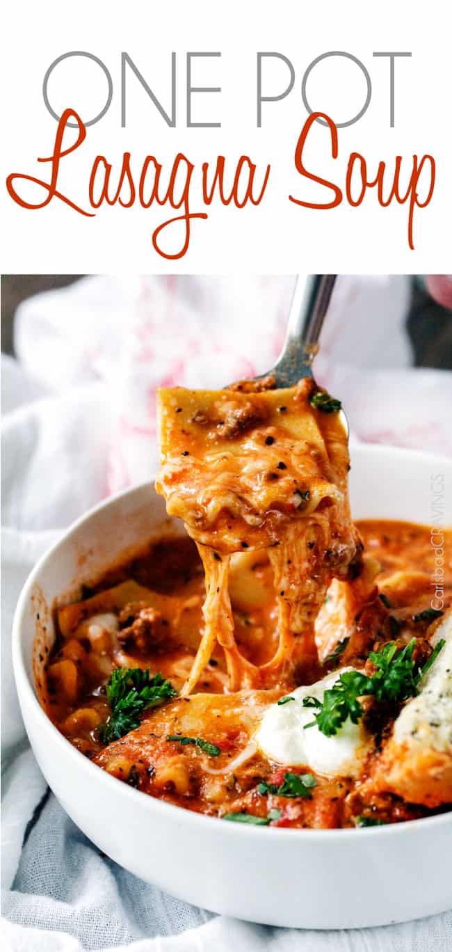 If you love this One Pot Lasagna Soup, as I’m sure you will, be sure to check out my One Pot White Chicken Lasagna Soup with cheesy layers of noodles smothered in velvety Italian spiced Parmesan infused sauce as well as my Chicken Parmesan, Sun-Dried Tomato Pasta, and Shrimp Fettuccine! All warm, comforting, delectable dinners to satisfy those cheesy Italian cravings!