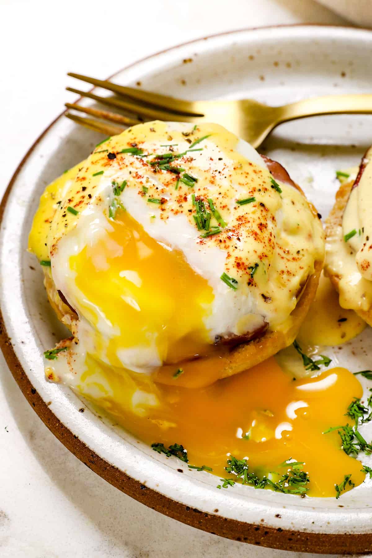 Hollandaise sauce is a MUST for classic Eggs Benedict! It’s luxuriously creamy, buttery, lemony and so good, it’s one of the five Mother Sauces in French cuisine (despite the Dutch name origin).