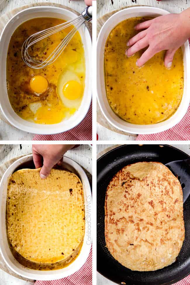 For my first batch, I just dunked the soft Flatout Flatbread in batter like in the video, rolled them up doused with syrup. Â Divine. Â I brought them up to Patrick and we both shoveled them into our mouths like we just discovered the new best French Toast recipe. Â He was more than happy he waited to brush his teeth.