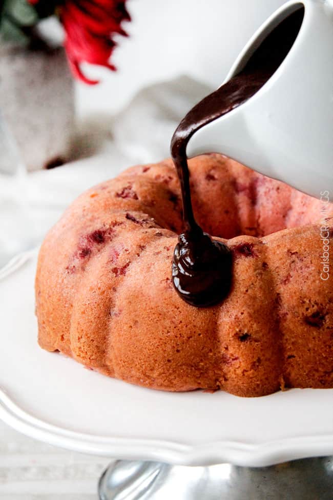 Rich, buttery, tender Strawberry Pound Cake swirled with fresh strawberries and smothered in smooth, silky Chocolate Ganache.