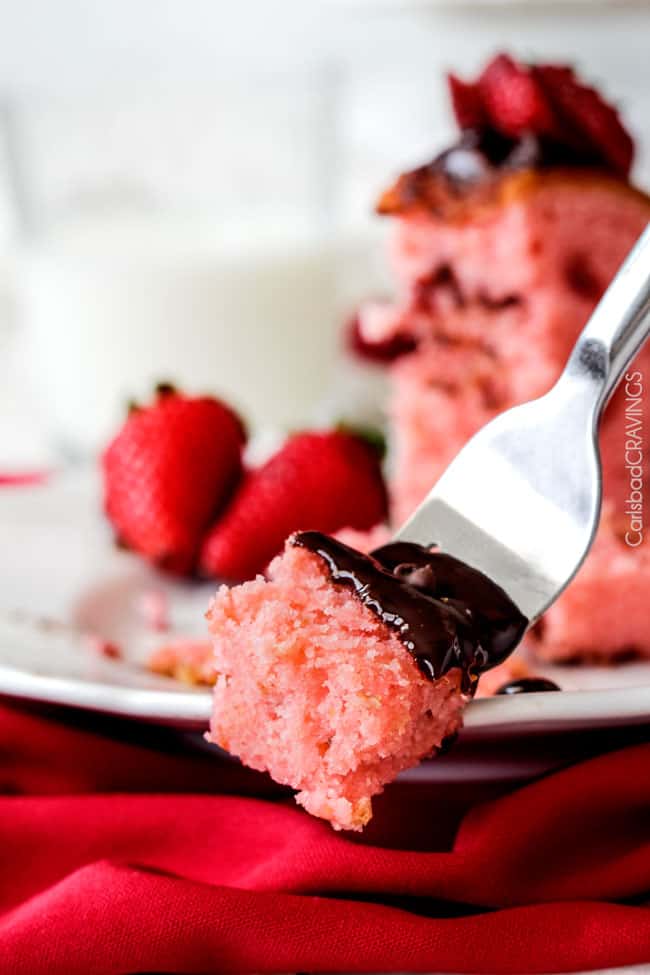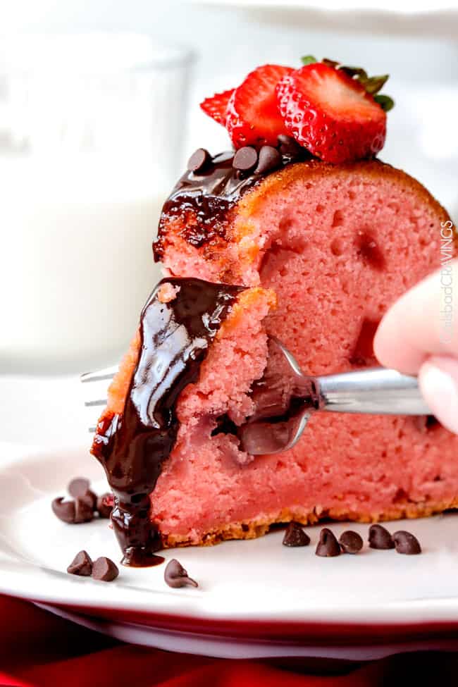So every bite is chocolate covered moist, rich Strawberry Pound Cake.