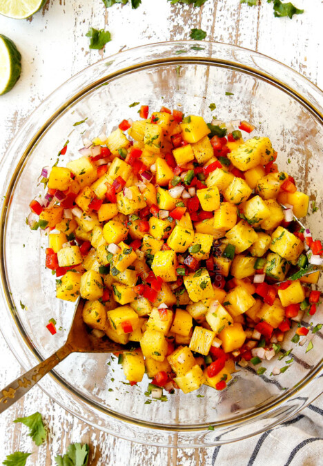 If you don’t like any of the aforementioned fruits, are allergic, or simply want to use what you have on hand, then to free to swap some of them out. I don’t suggest omitting the pineapple, however, because it is both wonderfully juicy and sweet. If you can’t get a hold of fresh pineapple, then use canned packed in its juice – not in heavy syrup – OR swap it for mangos for their juicy sweetness.