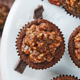 Wow! Are there even words to describe these? Your “heaven sent” description definitely fits! They are SOOOOO good! German Chocolate cake was my dad’s favorite dessert, too. Since he passed away I never make it, because my husband and kids will not eat anything with coconut. I recently found out that German Chocolate cake is our youth pastor’s favorite treat, and then I saw that you had a recipe for cupcakes, so I knew I had to make them. So glad I did! I made a dozen cupcakes with the coconut/pecan frosting, and left the others to frost to my families liking. Both the cake and the frosting are fantastic! The cake is moist and chocolately, and the frosting is seriously addictive. In fact, I shouldn’t admit it, but after topping the dozen cupcakes, I ate the rest of the frosting with a spoon….ALL OF IT….I couldn’t stop! I’ll definitely be making these often….hopefully I don’t eat them all myself. 🙂