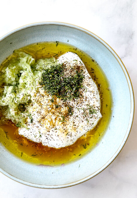 Greek yogurt/lazy tzatziki: when I’m feeling lazy or don’t have all the ingredients for tzatziki, I’ll whisk together Greek yogurt, lemon juice, dried dill, garlic powder, salt, pepper.