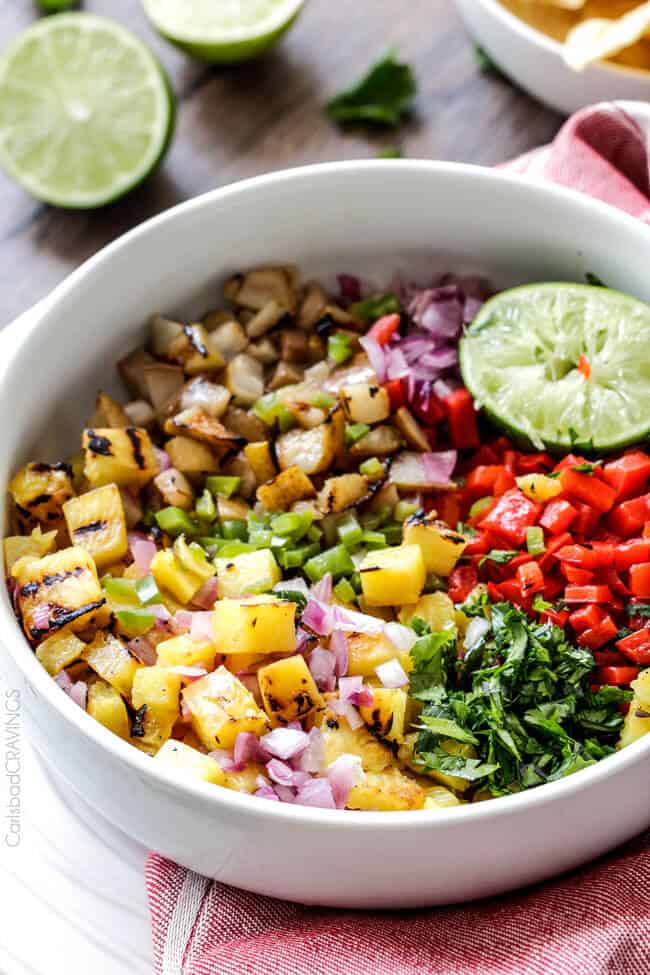 I expected the Pineapple Salsa to make me drool with every taco bite, but I didn’t expect to be so blown away by devouring it just plain. Mind blowing delicious. Although I shouldn’t have been that surprised because all the components are delish alone and even better grilled. almost everything is better grilled.