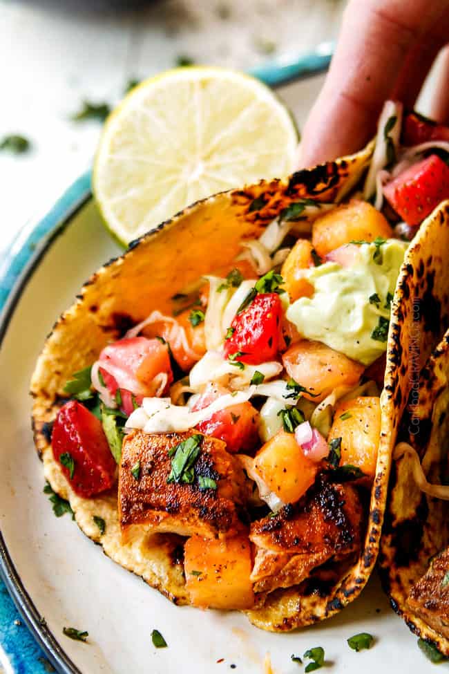 Teriyaki Chicken Tacos with Pineapple Pear Salsa