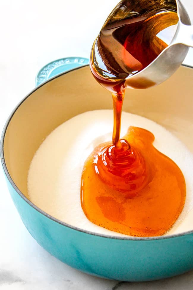 - Make Honey Glaze: whisk the Honey Glaze ingredients together in a medium saucepan. Bring to a simmer, stirring often, until the sugar dissolves, about 1-2 minutes. Set aside.