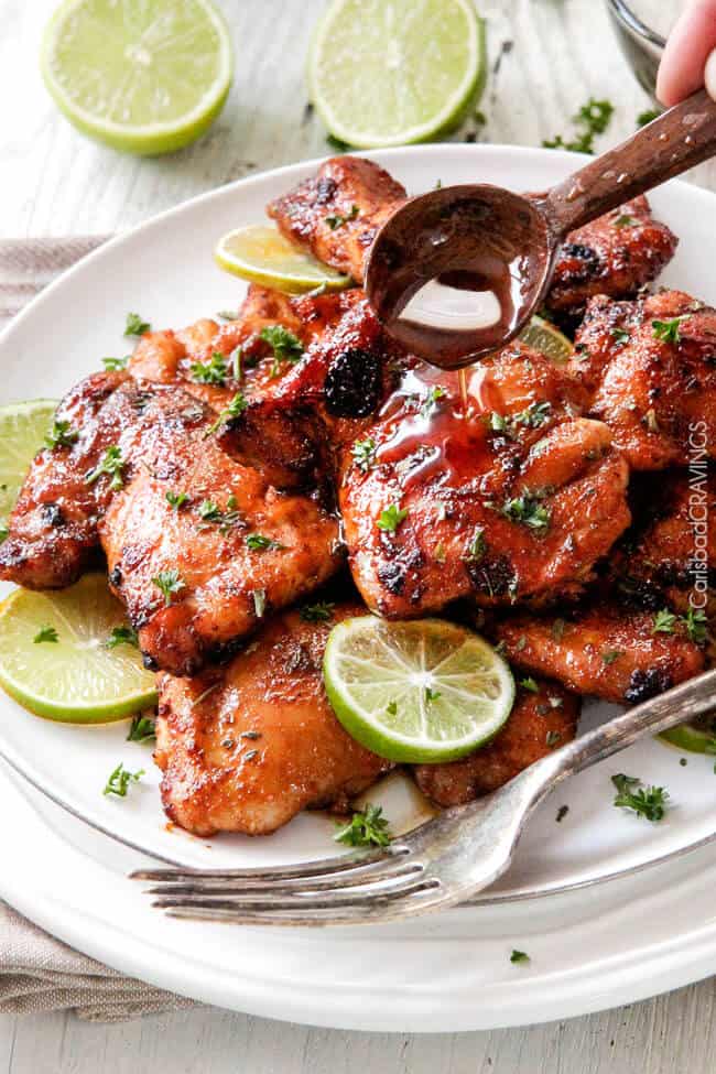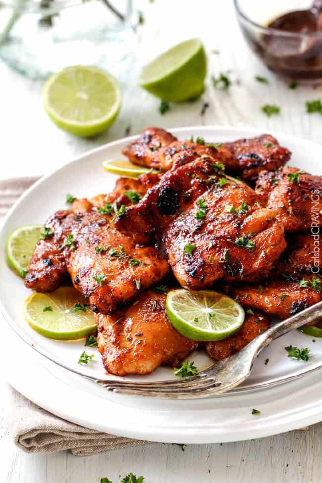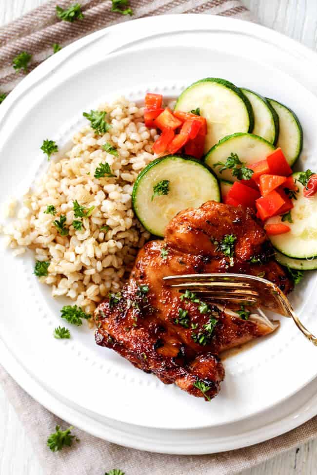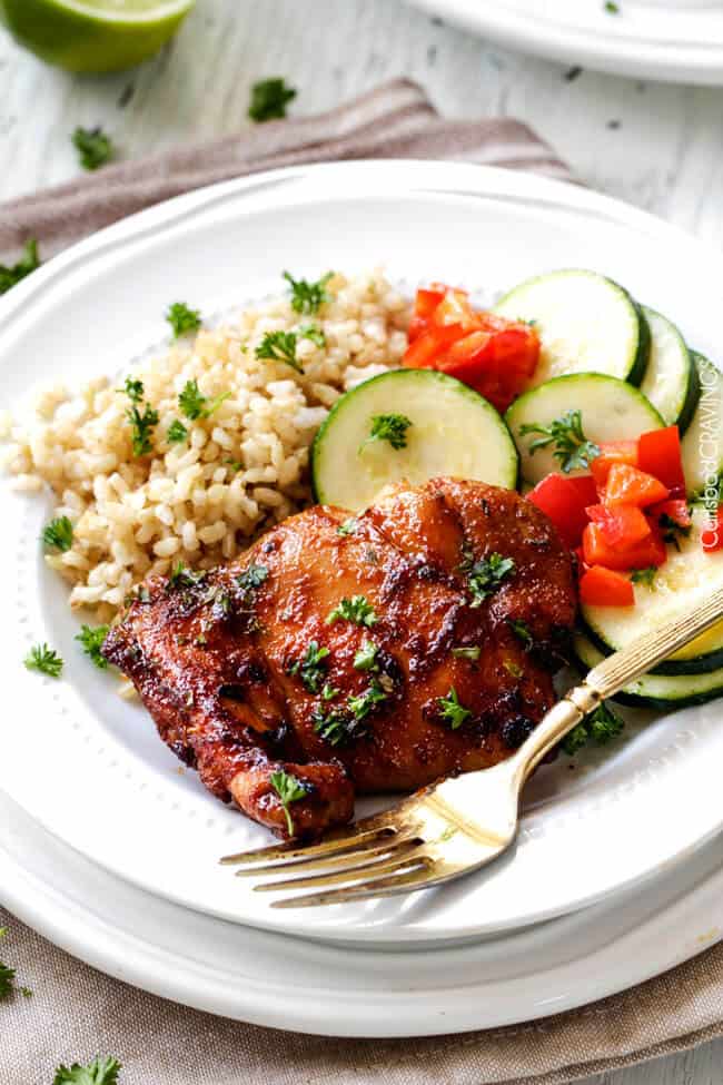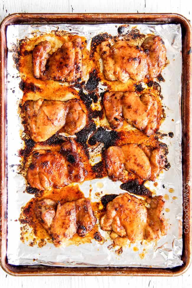A word about this cooking method – it is important that you use boneless, skinless chicken thighs instead of chicken breasts. Not only are chicken thighs more flavorful, but most importantly, they will remain tender and juicy after cooking at such a a high temperature whereas chicken breasts will dry out.